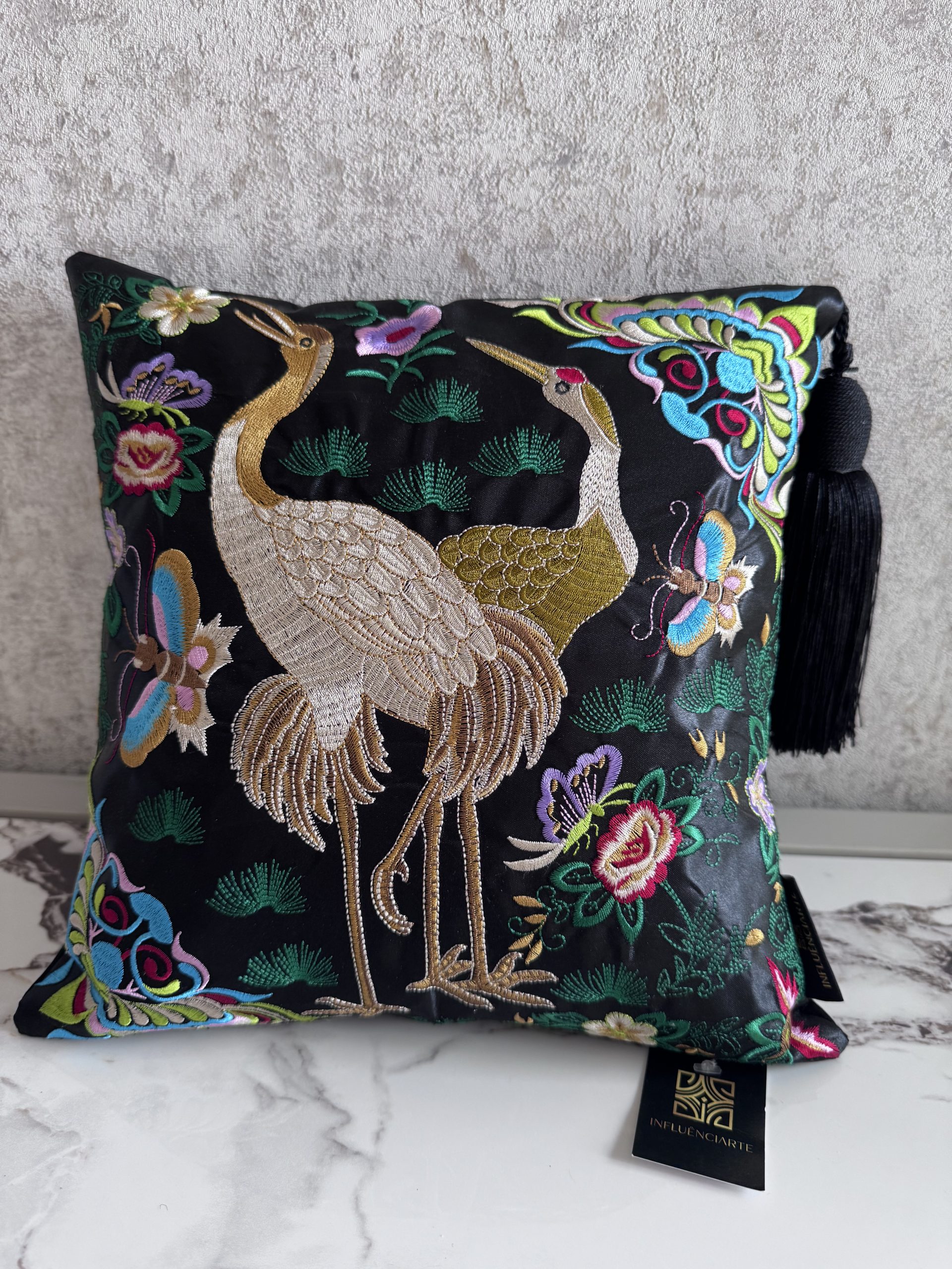 Início / Textêis / Almofadas / Almofada Negra com pássaro